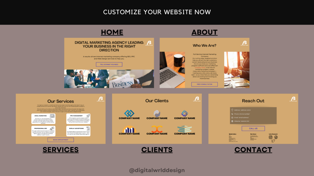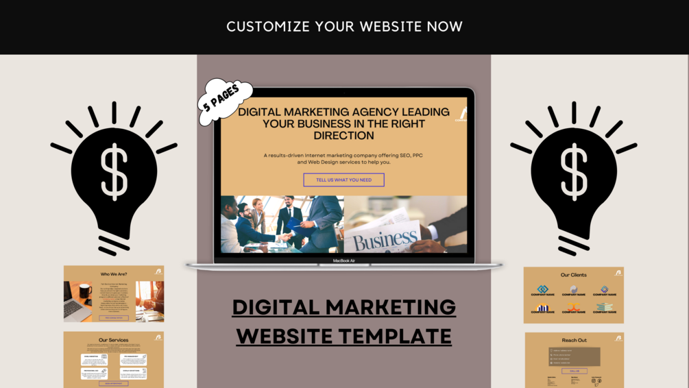Digital Marketing Beige & Black Website Template, Customizable and Easy to Set Up Digital Marketing Website Template
