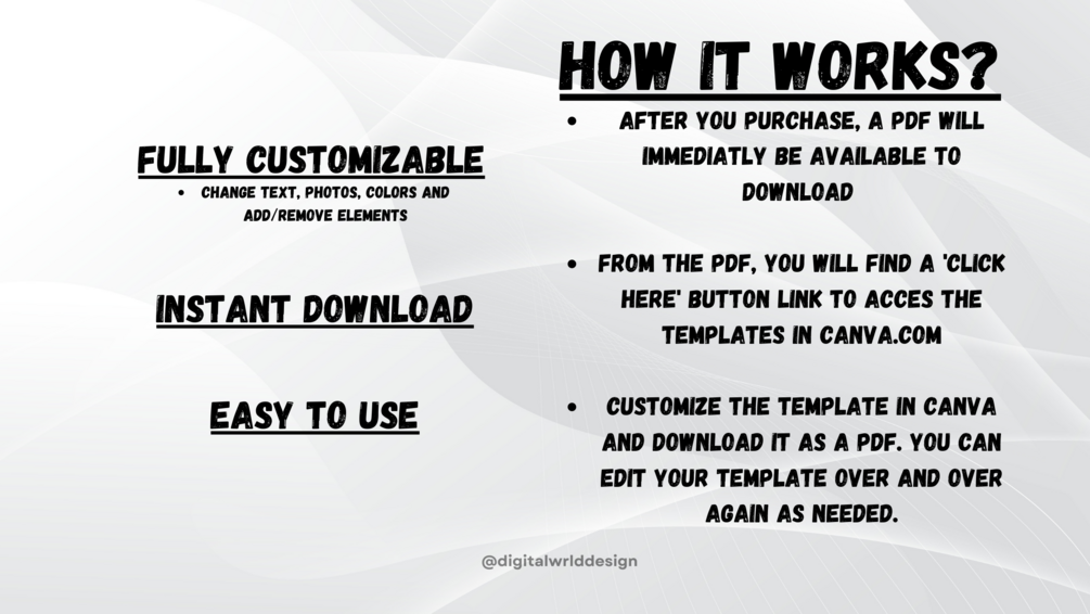 2. After you order, you will receive immediate access to a PDF guide for accessing and editing your template.