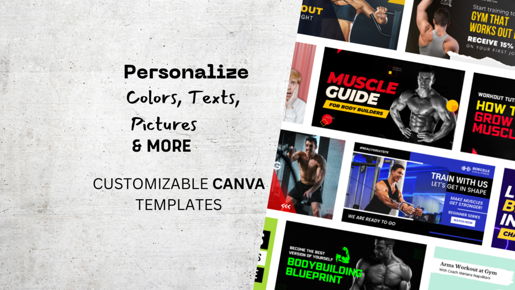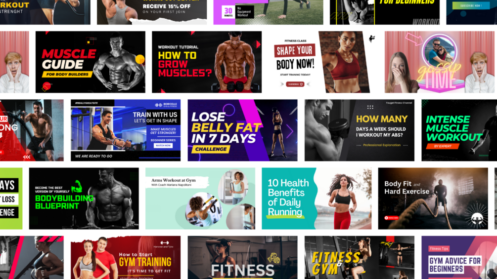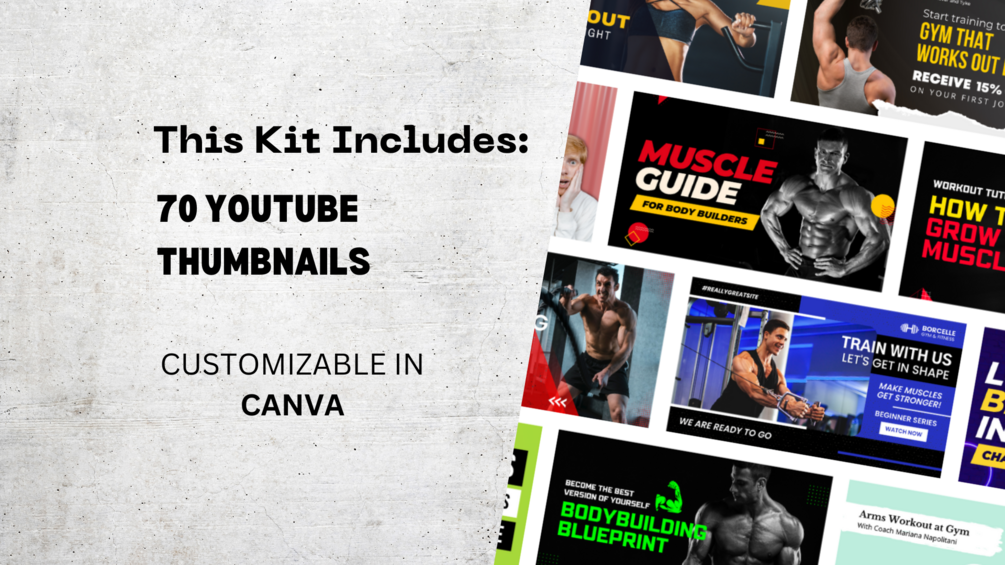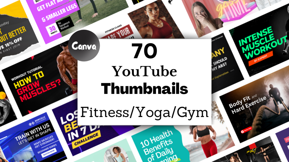 YouTube Thumbnail Templates | Vlogger Kit | Fitness-Yoga-Gym Templates | 70 Canva Templates